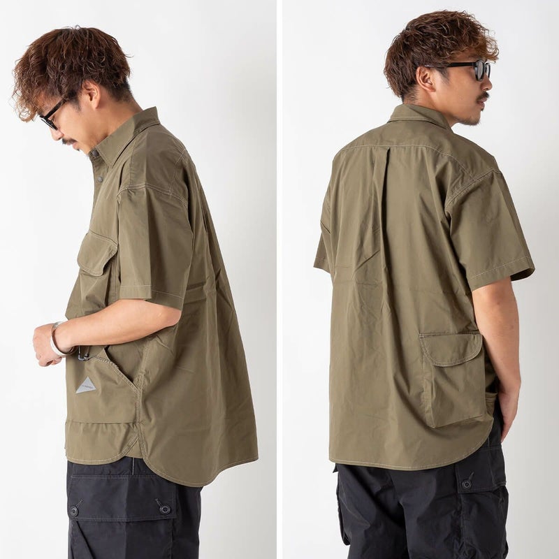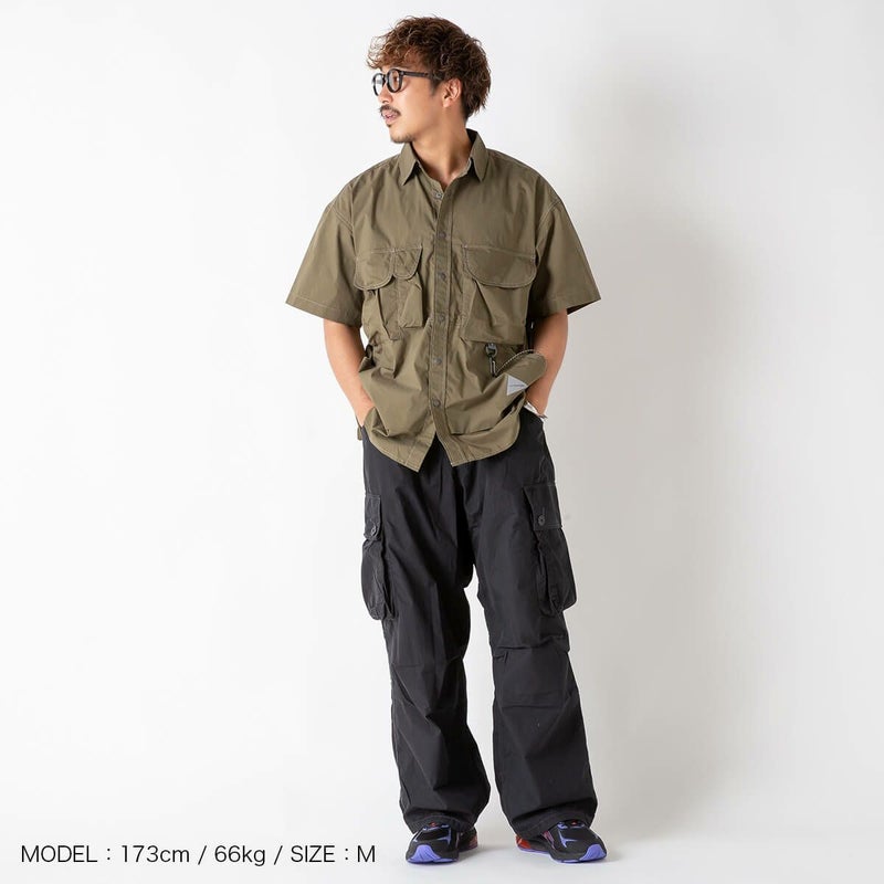 and wander コーデュラ タイプライター バンドカラーシャツ L