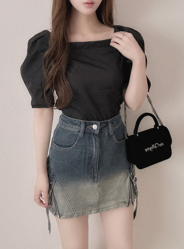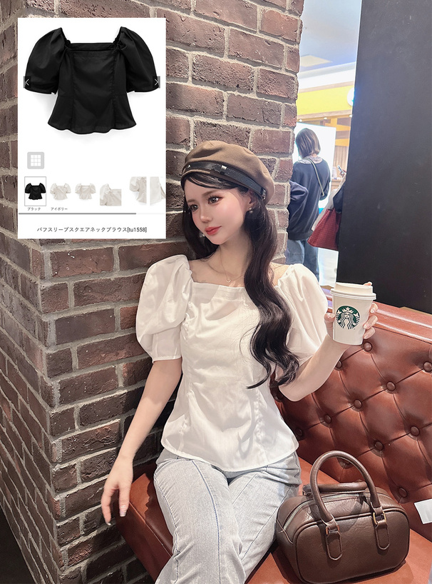 スクエアネックがデコルテをすっきりと見せるブラウス。