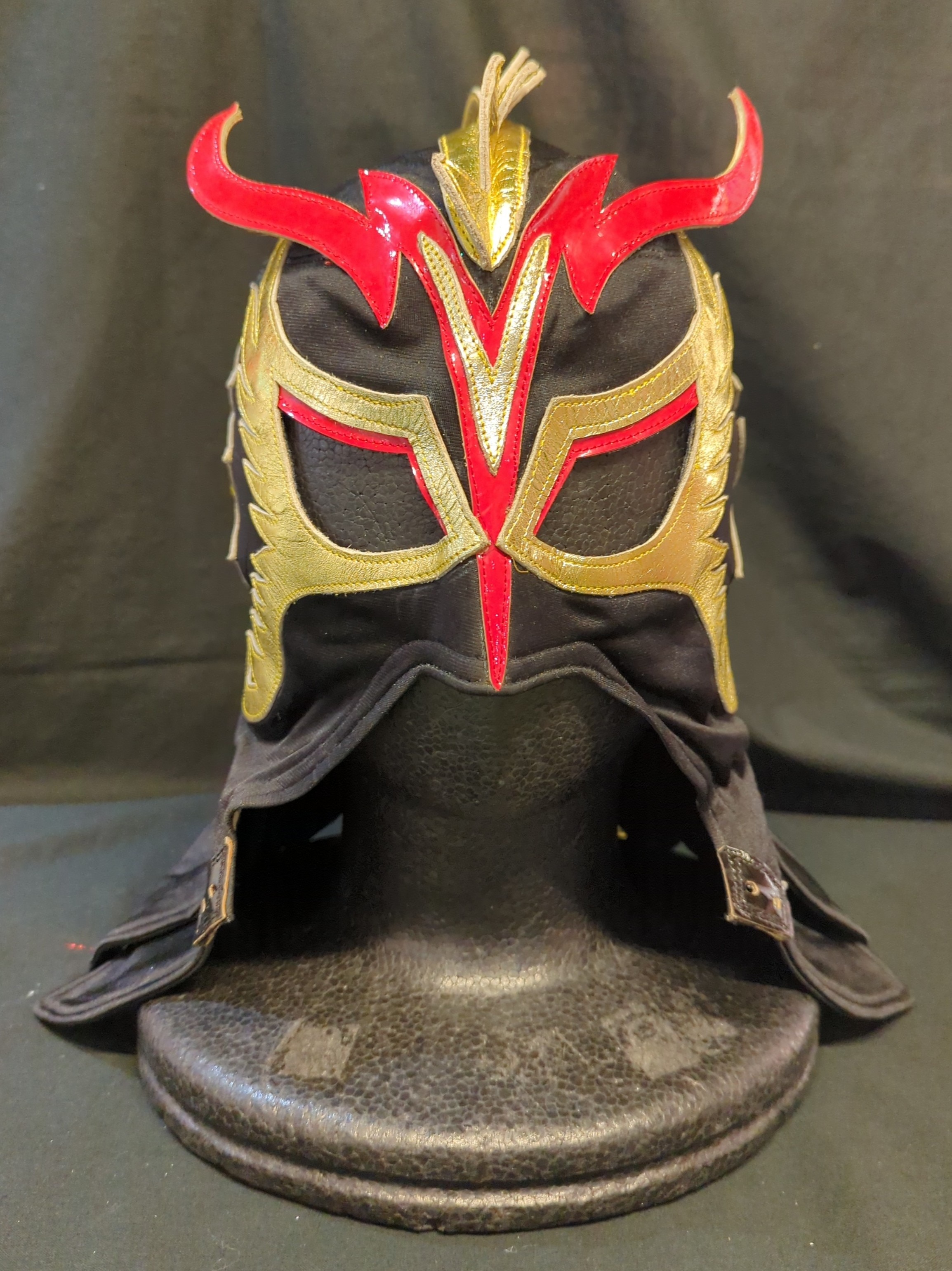 プロレスマスク ブシオ製【ウルティモ・ゲレーロ&レイ・ブカネロ ハーフタイプ(黒×黄色・銀・赤・黒フチ)】アブルノサイン入り