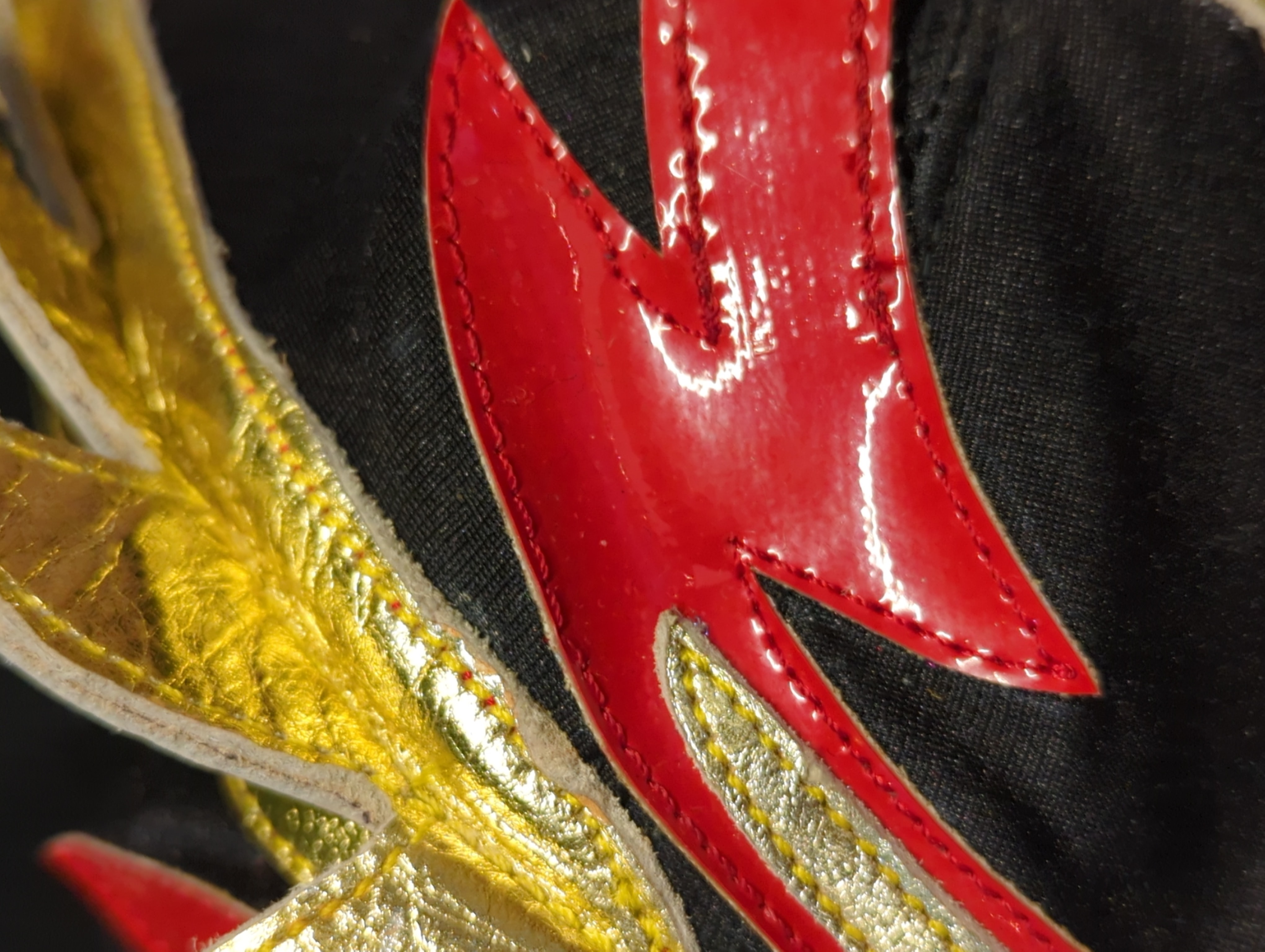プロレスマスク ラウルロメロ製【オホ・デ・ティグレ(金ラメ×黒・赤・白フチ)】 刺繍入り