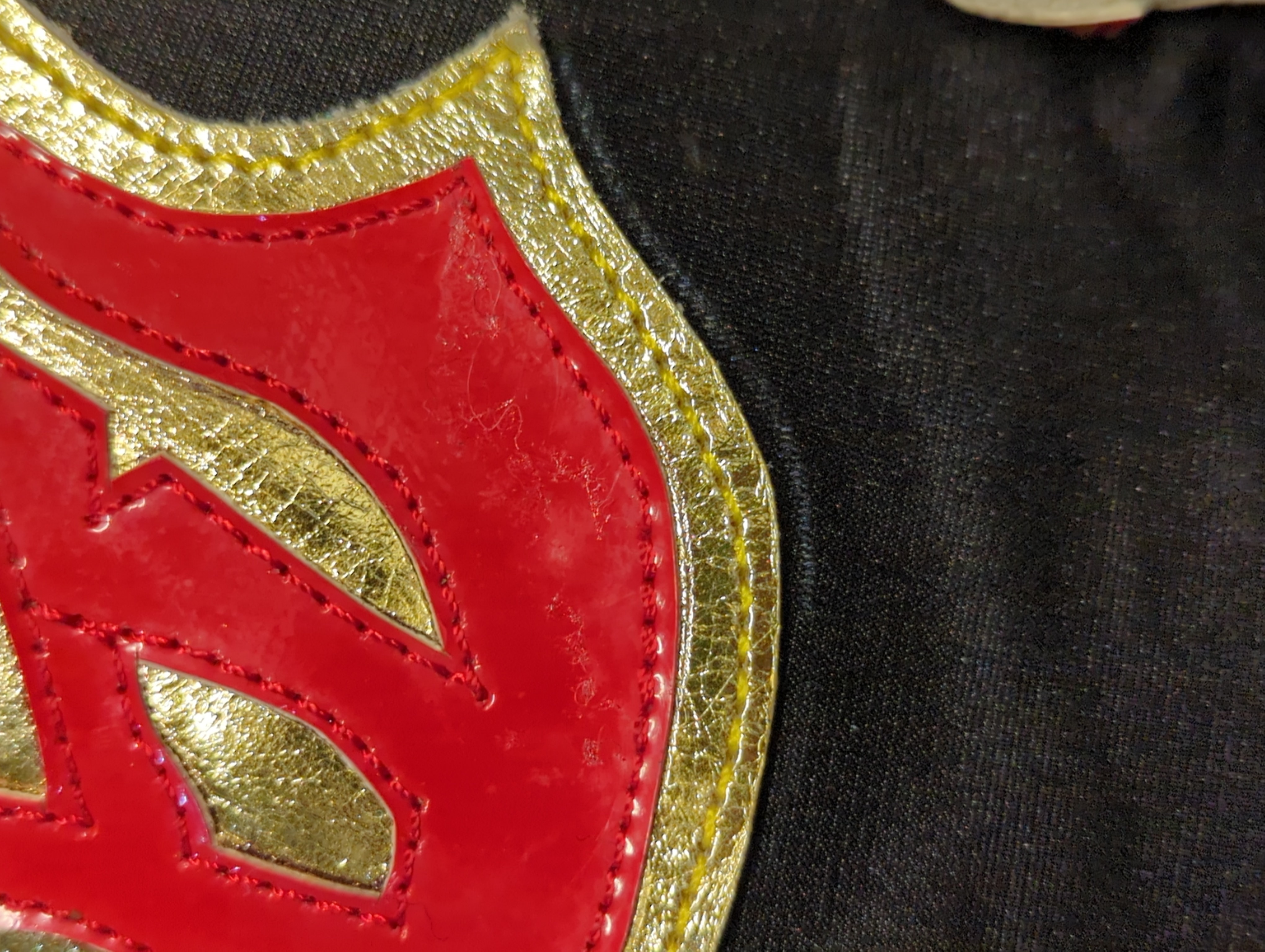 プロレスマスク ウンベルト製【ミル・マスカラス(黒ラメ×金・赤フチ)】 タグなし
