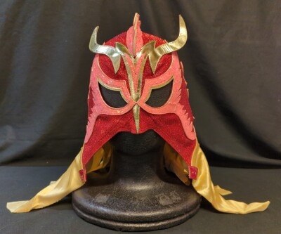 プロレスマスク アロンカナレス製 【ドス・カラス(金×赤ラメ・銀特殊フチ)】 A刺繍入り サイン入り
