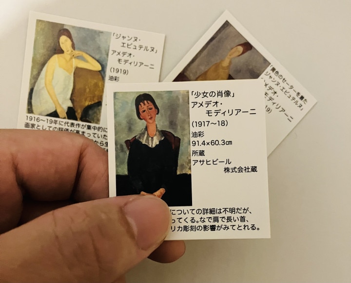 | 「お菓子のオマケシールのような手軽さで集められる名画」というコンセプトで48ミリ角のキラキラな名画シール(48美術館)を作っています。 裏面は絵画の解説付きです。今回はモディリアーニです。 今後たくさんの画家を作り続ける予定です。 |
