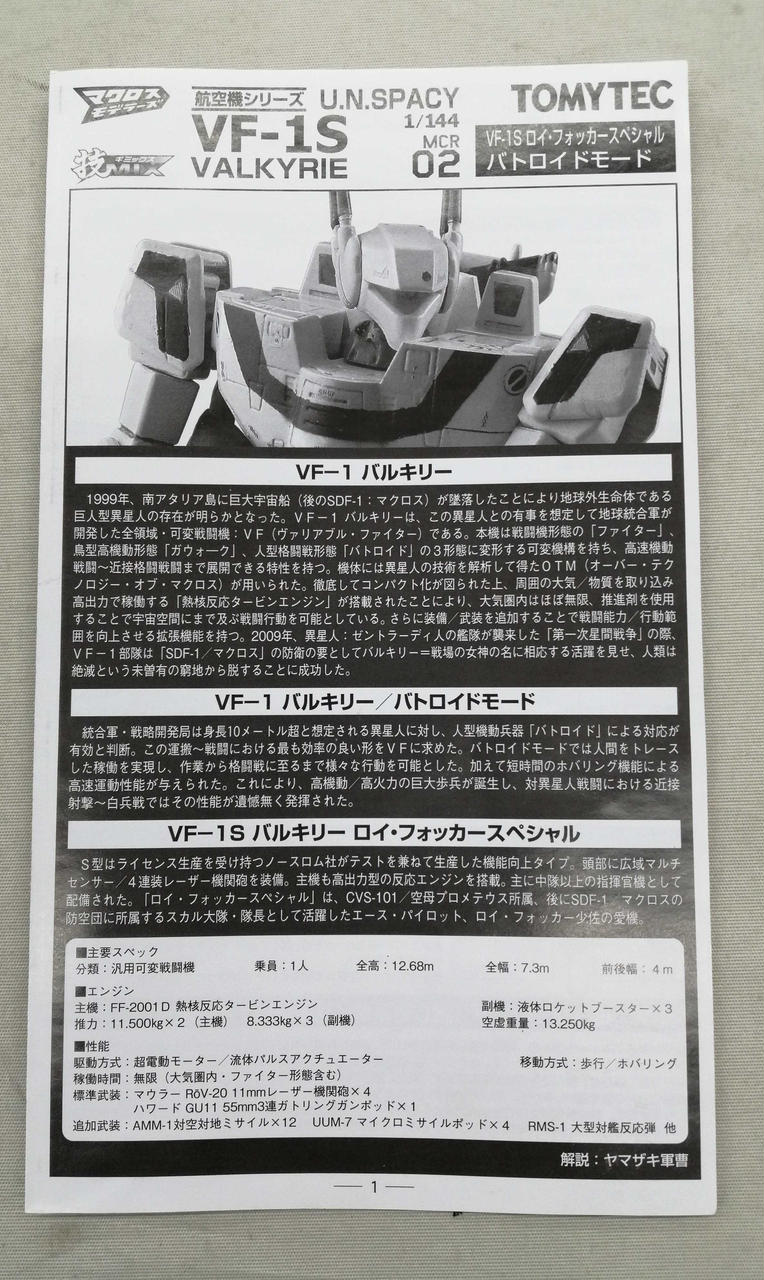 型番:1/144 VF-1S バルキリーロイ・フォッカースペシャル