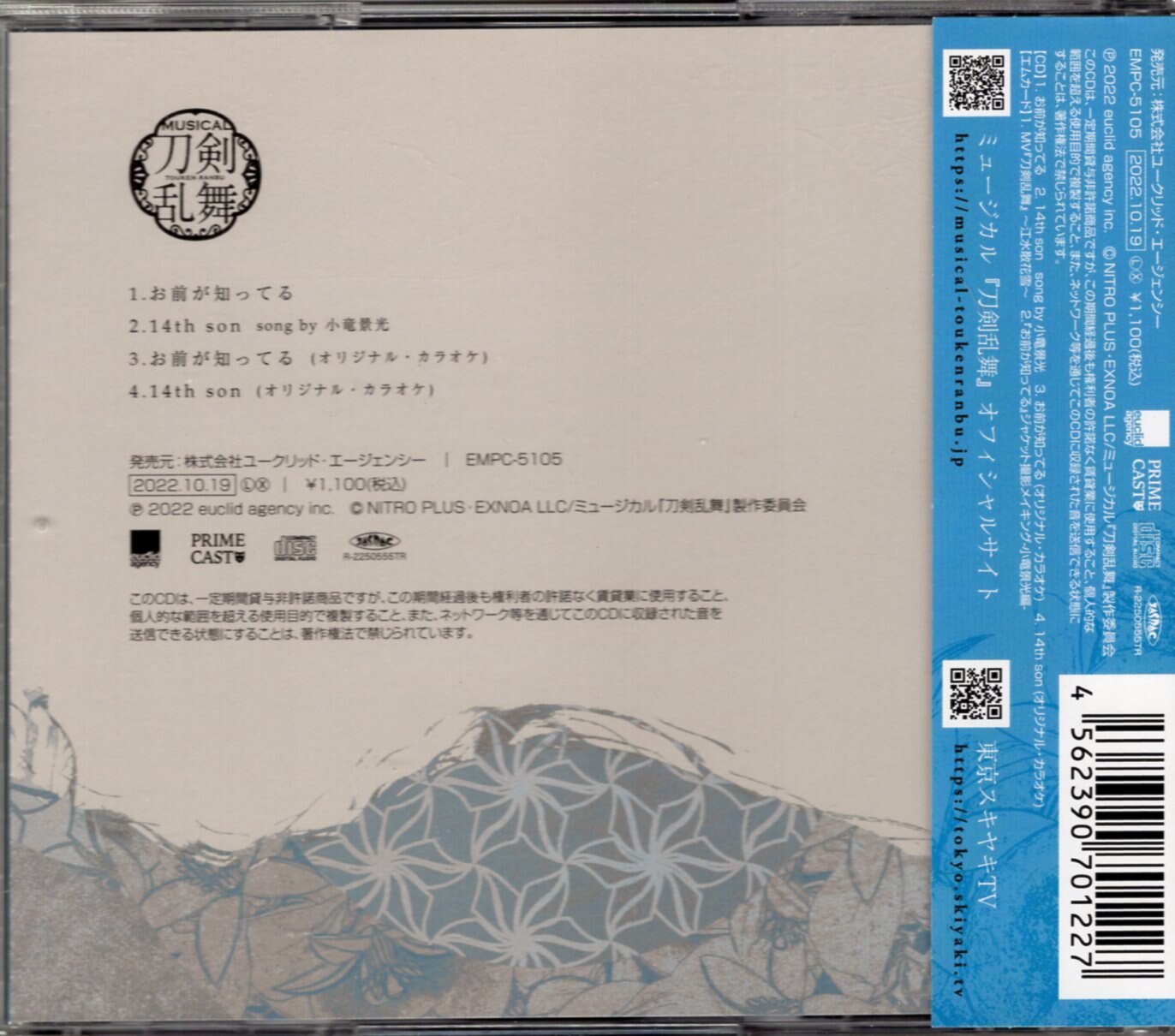 ダイキサウンド 舞台CD 刀剣男士 formation of 江水散花雪 お前が知ってる プレス限定盤C 小竜景光メインジャケット