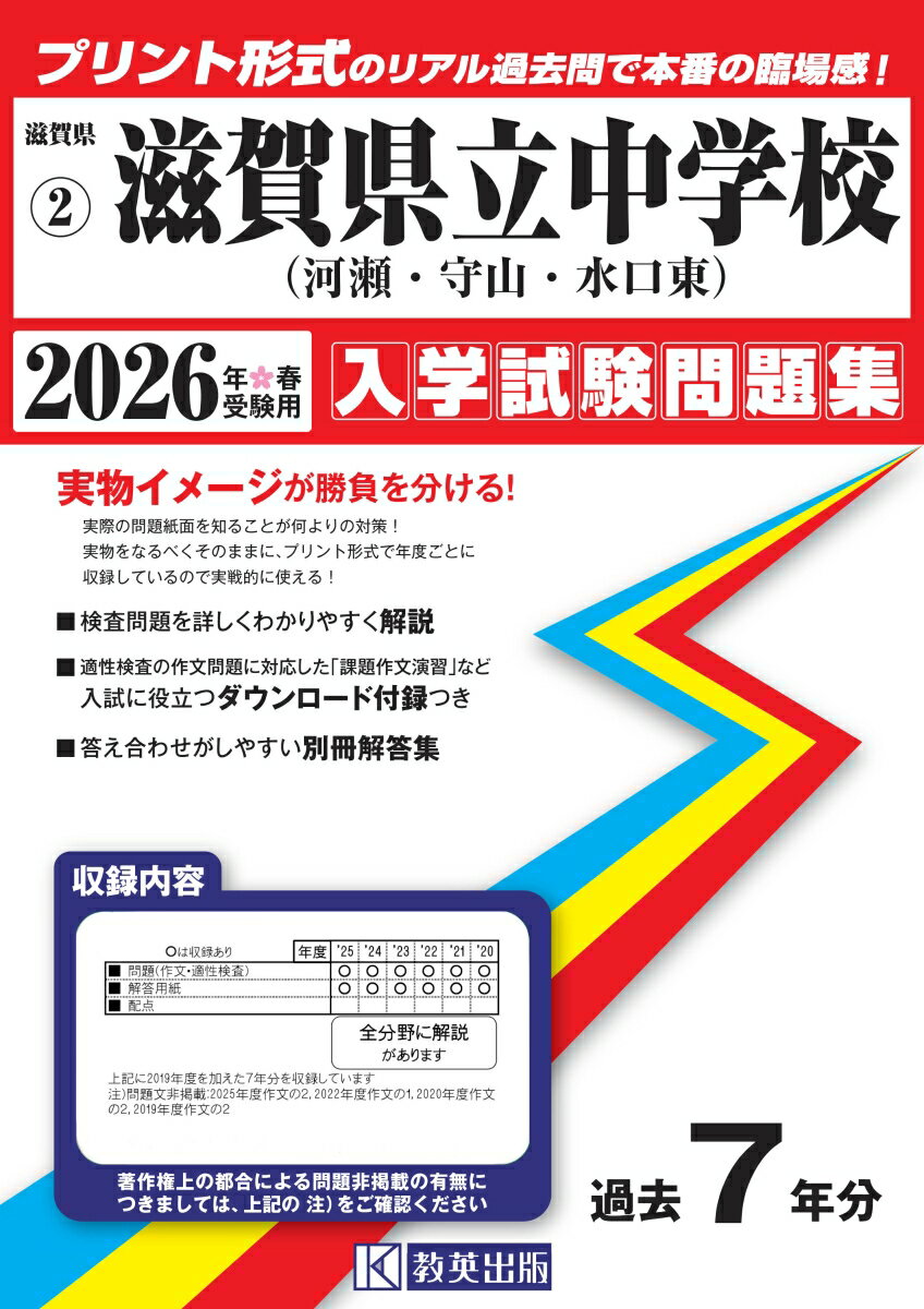 滋賀県立中学校(河瀬中・守山中・水口東中)(2025年春受験用)