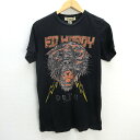 y■エドハーディ/ED HARDY ダメージ加工 プリントTシャツ■黒【メンズM】MENS/121【中古】