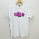 (^w^)b DIESEL ディーゼル クルーネック 半袖Tシャツ コットン 綿100% ロゴプリント トップス シンプル アメカジ 古着MIX デイリー タウンユース ホワイト 白 メンズ サイズS