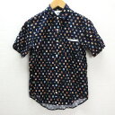 X★ ロフトスキー/rovtski 総柄 半袖シャツ【2】紺MENS細身/21【中古】