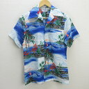 s■ライアニ/Rai Aani Hawaii 総柄オープンカラーシャツ/アロハシャツ【L程度】青系/MENS/183【中古】