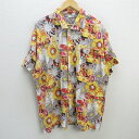 k■90年代■モスキーノ/MOSCHINO 総柄 半袖シャツ/ビッグサイズ/レトロ【4L】黄/MENS■115【中古】