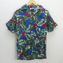 k■ハワイ製■ヒロハッティ/HILO HATTIE ハイビスカス柄 半袖アロハシャツ/コットン【S】MENS■109【中古】