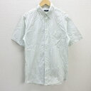 R■日本製■シップス/SHIPS ボタンダウン半袖シャツ チェックシャツ ■緑系【L】MENS/168【中古】■