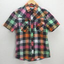 C■ビーチサウンド/Beach Sound チェック柄 半袖 ウエスタンシャツ【M】マルチ/MENS■163【中古】■