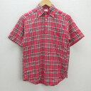 C■ヒピハパ/JIPIJAPA チェック柄 半袖 プルオーバーシャツ【M程度】赤/MENS■99【中古】■