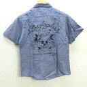 Q■エドハーディ/ED Hardy バックプリント 半袖シャツ■紺系【 メンズM 】MENS/138【中古】