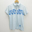T■ランドリー/LAUNDRYハイビスカス柄 半袖ポロシャツ■水色【M】MENS/B52【中古】