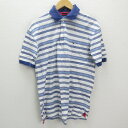 y■トミーフィルフィガー/TOMMY HILFIGERマルチボーダー 半袖ポロシャツ■白【メンズM】MENS/115【中古】
