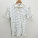 s■日本製■月桃物語 ボーダー柄 胸ポケット付き 鹿の子地ポロシャツ【L】白/MENS/24【中古】