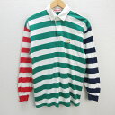 z■ミキハウス/MIKIHOUSE 長袖ポロシャツ ボーダー柄【L】白緑赤/men's/7【中古】