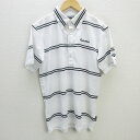 H■テイラーメイド/TaylorMade ボーダー柄 半袖ドライポロシャツ ゴルフウェア【L】白/MENS■3【中古】