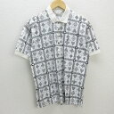 D■日本製■ブラックアンドホワイト/Black&white 総柄 半袖ポロシャツ/ゴルフ【L】白/MENS/73【中古】
