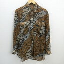 H■日本製■伊太利屋 レオパード柄 長袖ブラウス シースルー【9A2】茶/LADIES■156【中古】