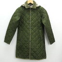 WW■英国製■ラベンハム/LAVENHAMフーディー/キルティング ロングコート■カーキ【36】LADIES【中古】