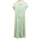 X★UK製 ローラアシュレイ Laura Ashley 花柄 半袖ワンピース ドレス【9】緑LADIES/219【中古】