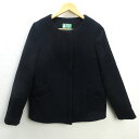 H■フラボア/FRAPBOIS ZOO ノーカラーウールジャケット/紺/LADIES■105【中古】