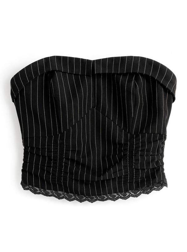 トップスはコルセット風の切替とギャザーでメリハリのあるルックに。