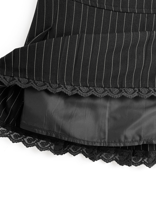 裾やスカートにあしらわれたレースが女性らしさを引き立ててくれる。