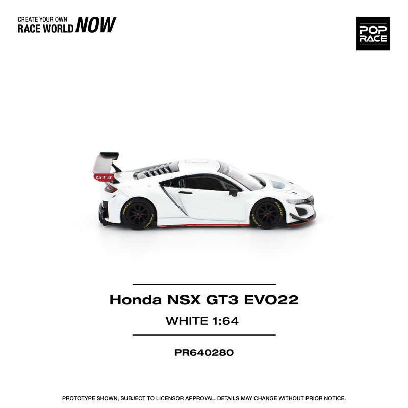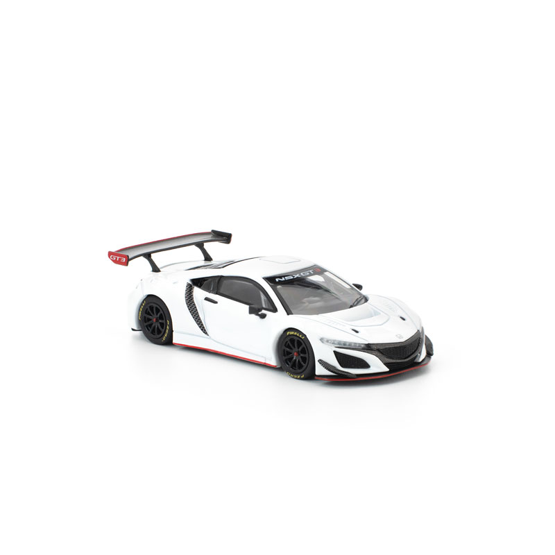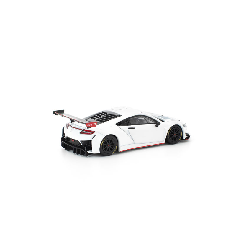 ●究極のレーシング・ホンダ、NSX GT3 エボ22が1/64スケールで登場! 飾りを抑えたピュアホワイトのボディに、控えめながら印象的なレッドとブラックのアクセントが映える洗練の一台です。 前モデル同様、マグネットマウント構造のエンジンカバーパーツは取り外し可能で、精密に再現されたエンジンルームをじっくりとご堪能いただけます。