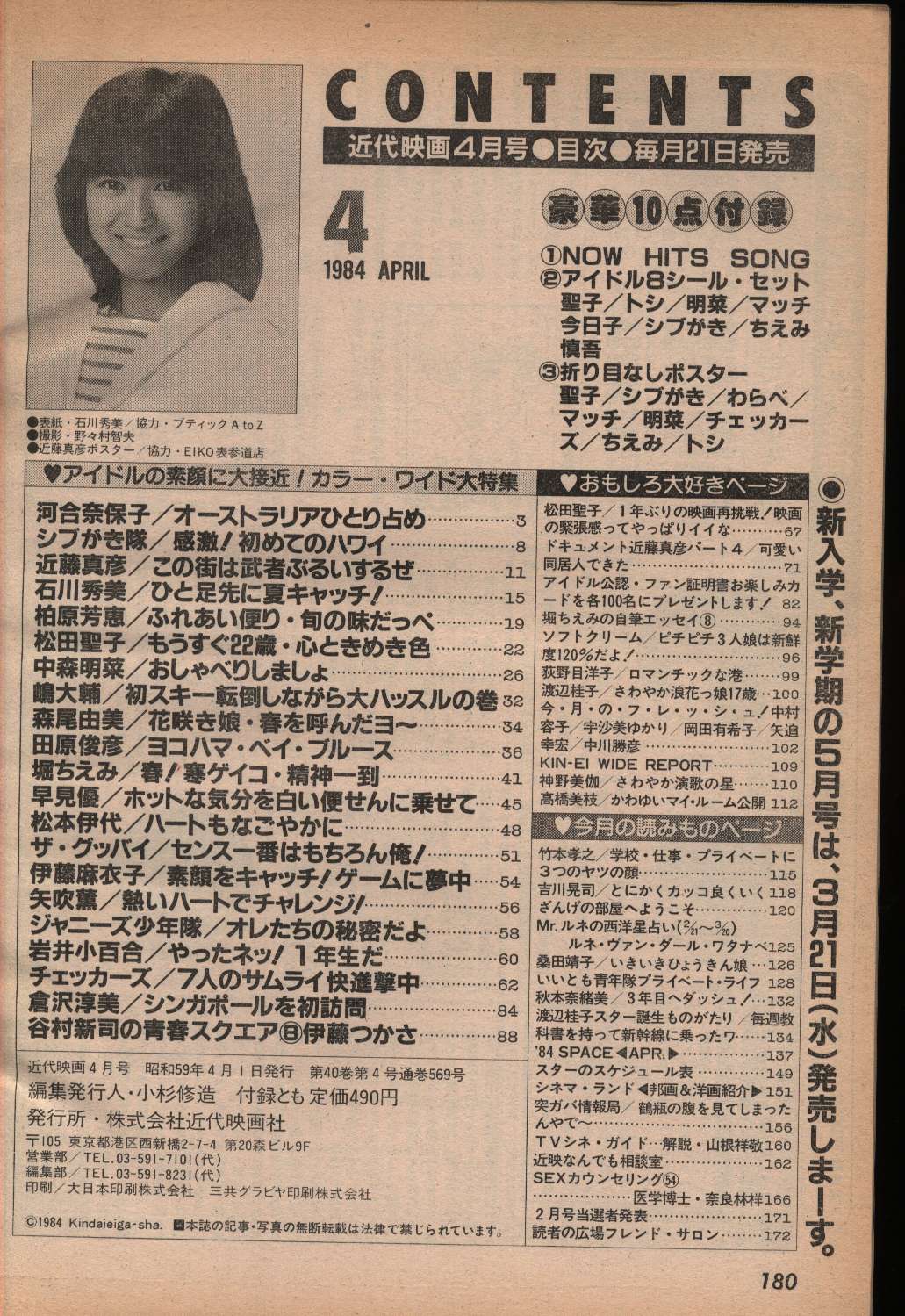 | 1984年発行 本体:表紙少キズ、裏表紙オレ 付録完品(ポスター×2、ステッカー、「NOW HIT SONG」) ポスター2点折り跡 |