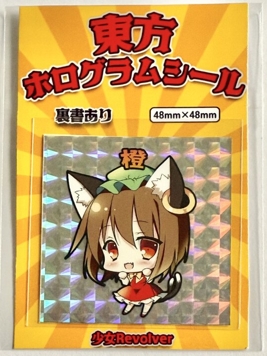 | 東方projectより橙のビックリマン風シールです。 【仕様】 デジタルオフセット印刷(表面)/角プリズム/48mm×48mm/裏書あり 個人製作のため完璧なものではございません。 裏書はインクジェット印刷となります。 |