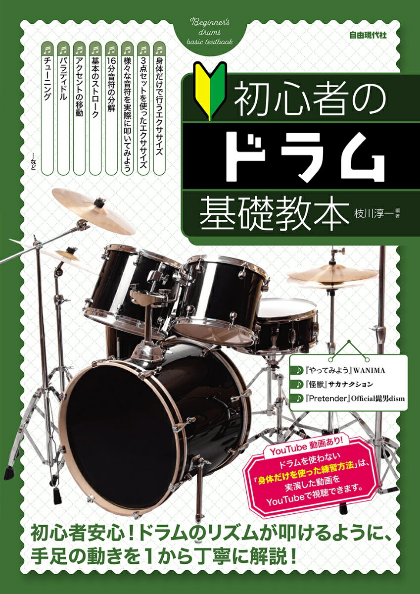ドラムのビートを叩けるように、1から丁寧に解説した教則本。手足の動作を一つずつ解説していくので、ドラムの経験が全くない初心者でも安心。また、「身体だけを使った練習方法」はYouTubeで実際のやり方を確認できる!その他、フィルインの入れ方、スティックの握り方、チューニングの仕方、パラディドル等、内容も充実。巻末ではJ-popのヒット曲を掲載しているので、楽しみながら練習できる。【コンテンツ】▶Chapter1 リズムを刻もう 〜目からウロコのエクササイズ〜 STEP1 はじめに用意する物 STEP2 身体だけで行うエクササイズ STEP3 3点セットを使ったエクササイズ STEP4 右足(バスドラム)の入れる位置を変えてできるリズム STEP5 発想の転換! 8ビートの完成! ▶Chapter2 16ビートに挑戦 STEP1 16ビートを叩いてみよう! STEP2 右足(バスドラム)の入れる位置を変えてできるリズム(16ビート) STEP3 ハイハットを右手と左手で交互に叩く奏法 STEP4 発想の転換! 16ビートの完成! ▶Chapter3 フィルインに向けての基礎練習 STEP1 ドラムセットの構成 STEP2 音符を理解する STEP3 様々な音符を実際に叩いてみよう STEP4 16分音符の分解 STEP5 分解した16分音符の修復 STEP6 分解した16分音符のパターンを組み合わせよう! STEP7 修復した4つのパターンを1つずつ繋げてみよう! ▶Chapter4 さらに上を目指したい方へ STEP1 スティックの持ち方 STEP2 フットペダルの踏み方 STEP3 基本のストローク STEP4 アクセントを入れてみよう STEP5 アクセントの移動 STEP6 移動したアクセントを組み合わせよう STEP7 パラディドル STEP8 チューニング STEP9 どこでもできる効果的な練習法 STEP10 表と裏 ▶Chapter5 応用曲 ♪やってみよう/WANIMA ♪怪獣/サカナクション ♪Pretender/Official髭男dism