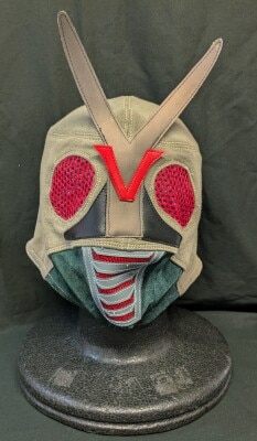 プロレスマスク【仮面ライダーX (銀×黒・灰・深緑・赤フチ)】チャックタイプ SPORTSタグ付き