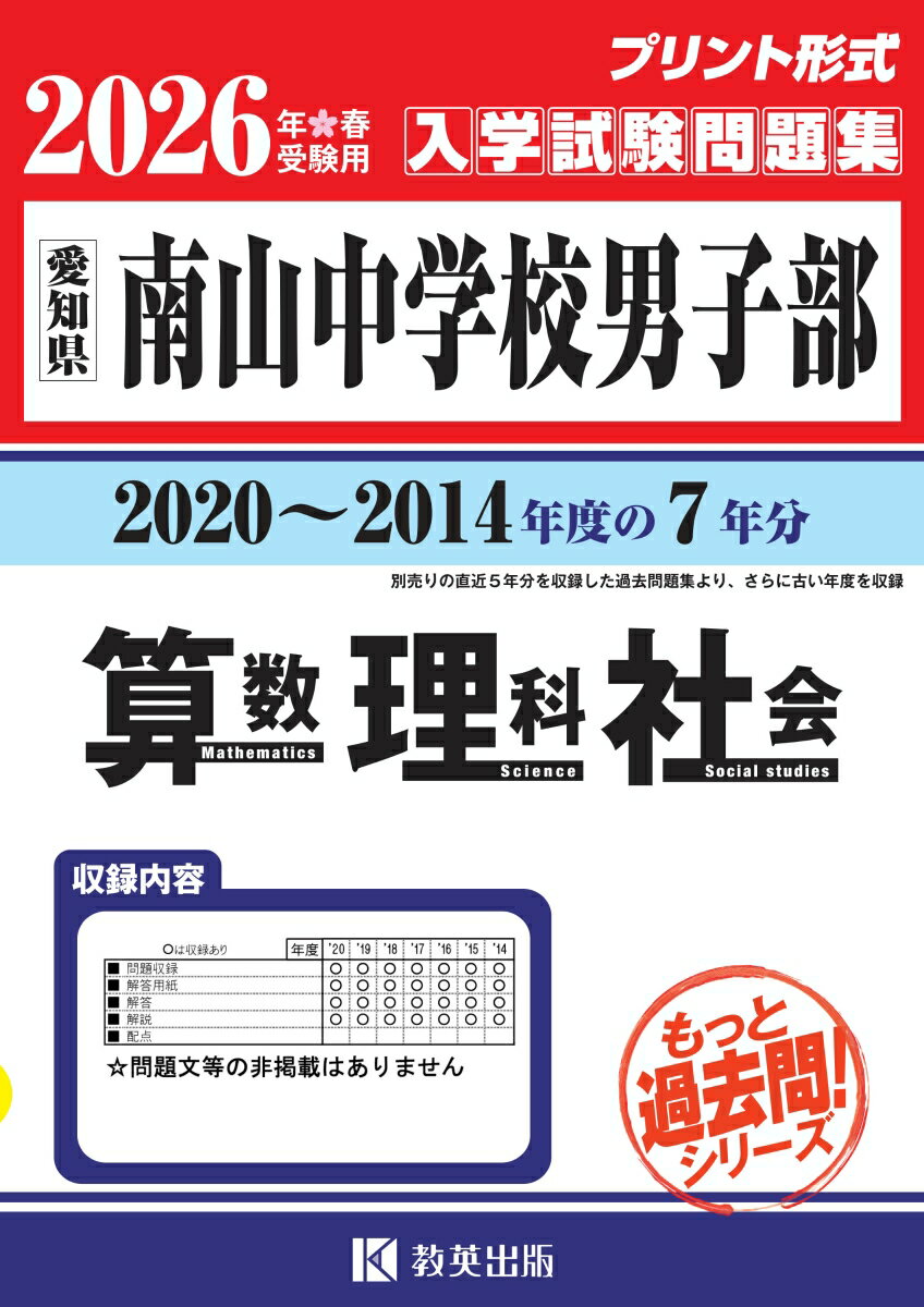 南山中学校(女子部)算数・理科・社会(2026年春受験用)
