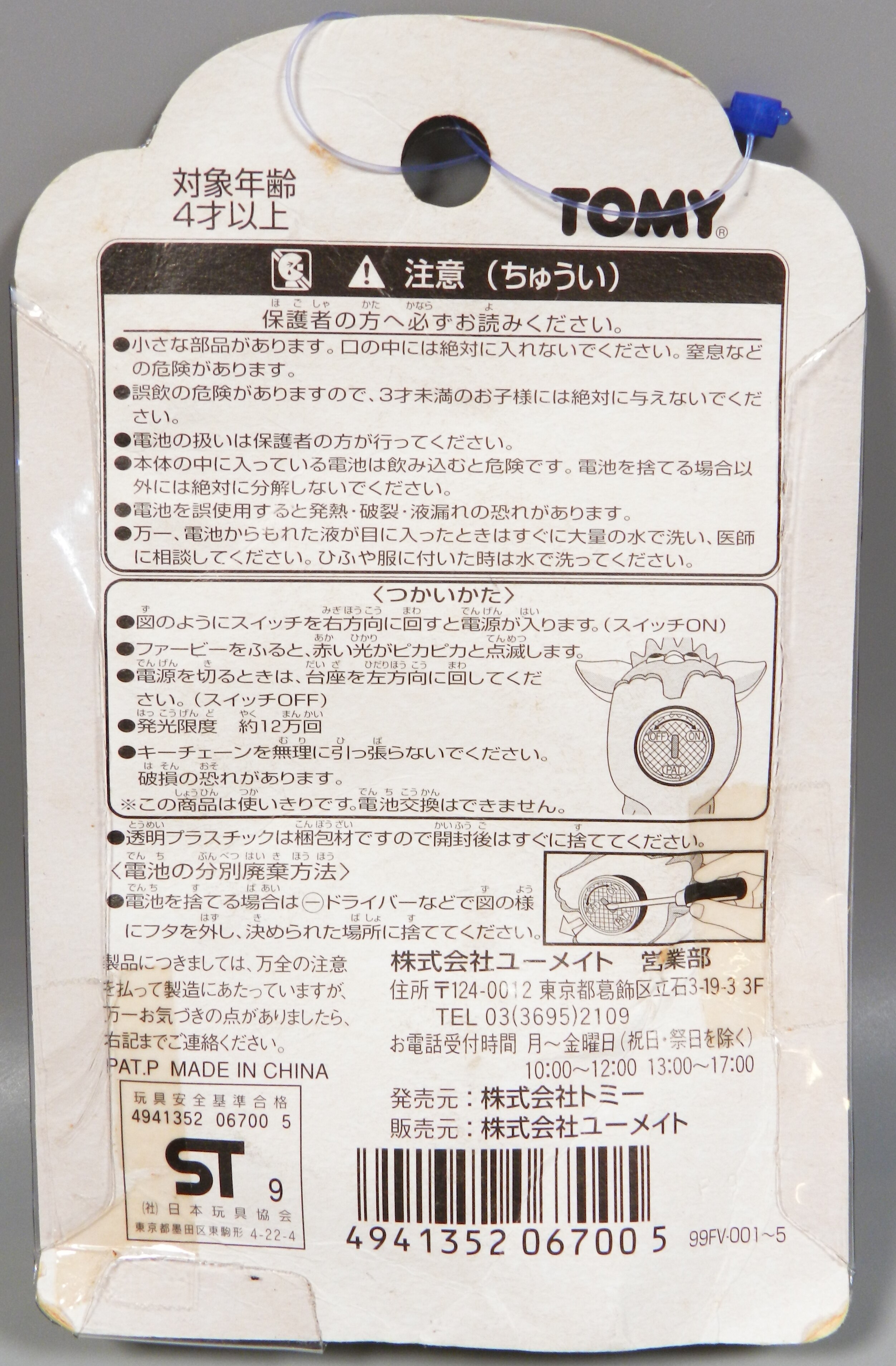 ユーメイト ファービー ライトキーホルダー グレー/白 TOMY Furby