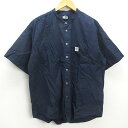 Q■ファクトタム/VALLIS by FACTOTUM スタンドカラー半袖シャツ■紺【メンズL】MENS/128【中古】