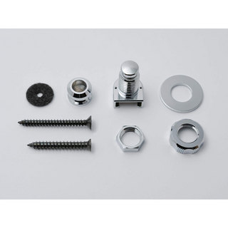 ストラップロック本体、ローレットナット、六角ナット、ワッシャー、エンドピン、フェルトワッシャー、取付ネジ 3.5x35mm、取付ネジ 4x30mm、各2個