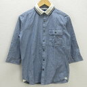 Q■フレッドペリー/FRED PERRY F4196 7分袖シャツ■紺【メンズS】MENS/116【中古】