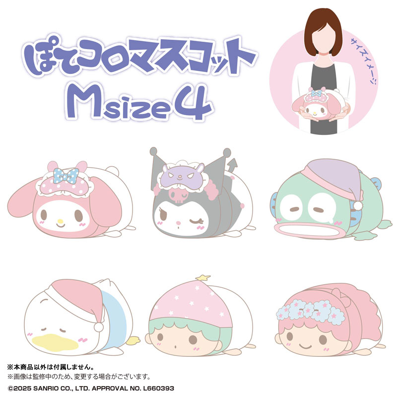 サンリオキャラクターズの【ぽてコロマスコット Msize4】が登場! デフォルメされたキャラクター達がコロコロ転がってかわいいぬいぐるみ! Mサイズは全長20cm!通常サイズの約2倍のボリュームです♪