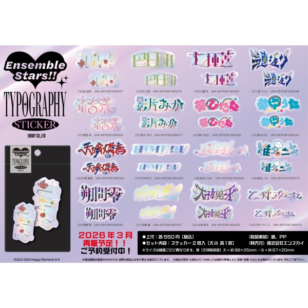 『あんさんぶるスターズ!!』キャラクターの名前を作字デザインしたステッカーが登場!