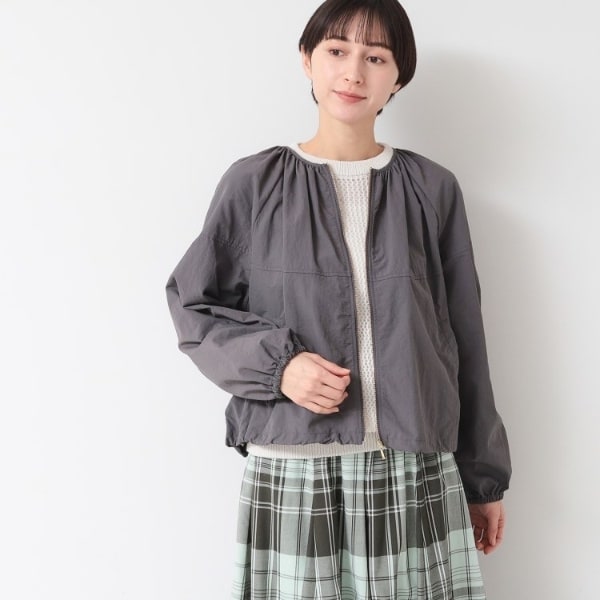 ギャザーがたっぷり入った軽やかなクルーネックブルゾン。