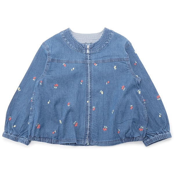 チェリー/リボン刺繍ストレッチデニムジャンパースカート
