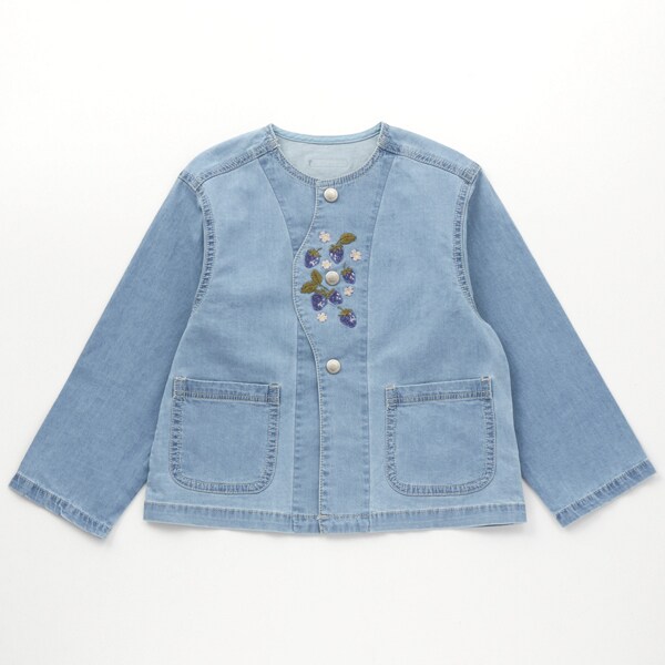 チェリー/リボン刺繍ストレッチデニムジャケット
