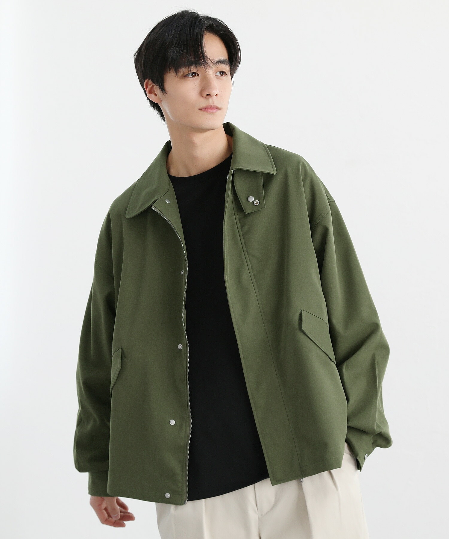 2WAYノーカラー撥水サーブルクロスブルゾン