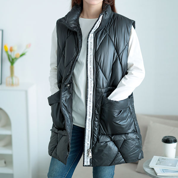 今季大人気中!トレンド顔になれる中綿ベストの登場です。ツヤ感のあるダイヤキルト柄がこなれるベスト。機能性のある大きなポケットがとっても便利でアクセントにもなってます。中綿&裏地付きなので、見た目以上に暖かな着心地。ポリエステル中綿で軽く肩こりなどの心配もありません。シンプルなカラーとデザインで、秋冬コーデのお供におすすめです。