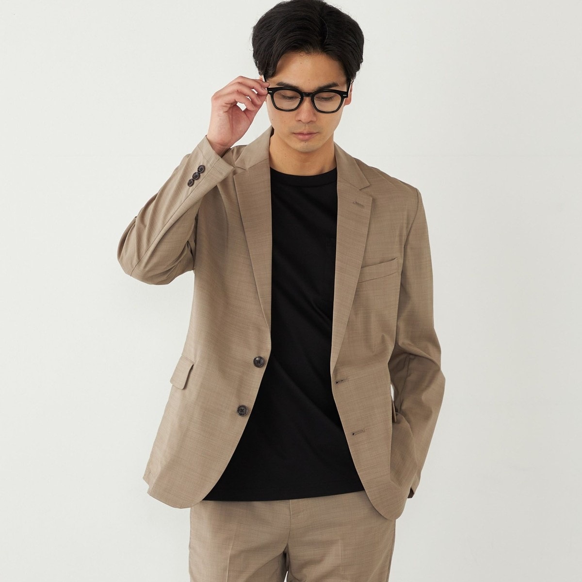 SHIPS Colors定番のポリエステルトロ素材を使用した2ボタンのジャケット。